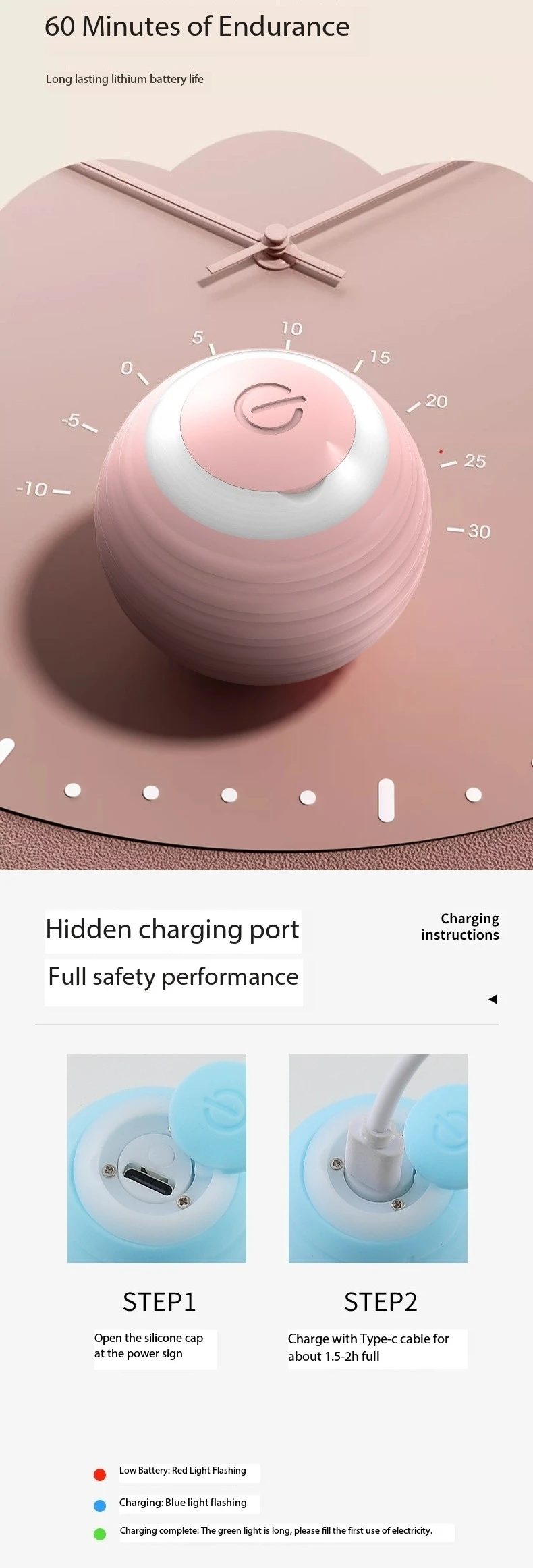 Stimulating Exercise: Encourage physical activity and mental stimulation in your pet with this electric rolling ball toy. As it moves unpredictably, it triggers your cat's natural hunting instincts, promoting exercise and keeping them active and healthy.