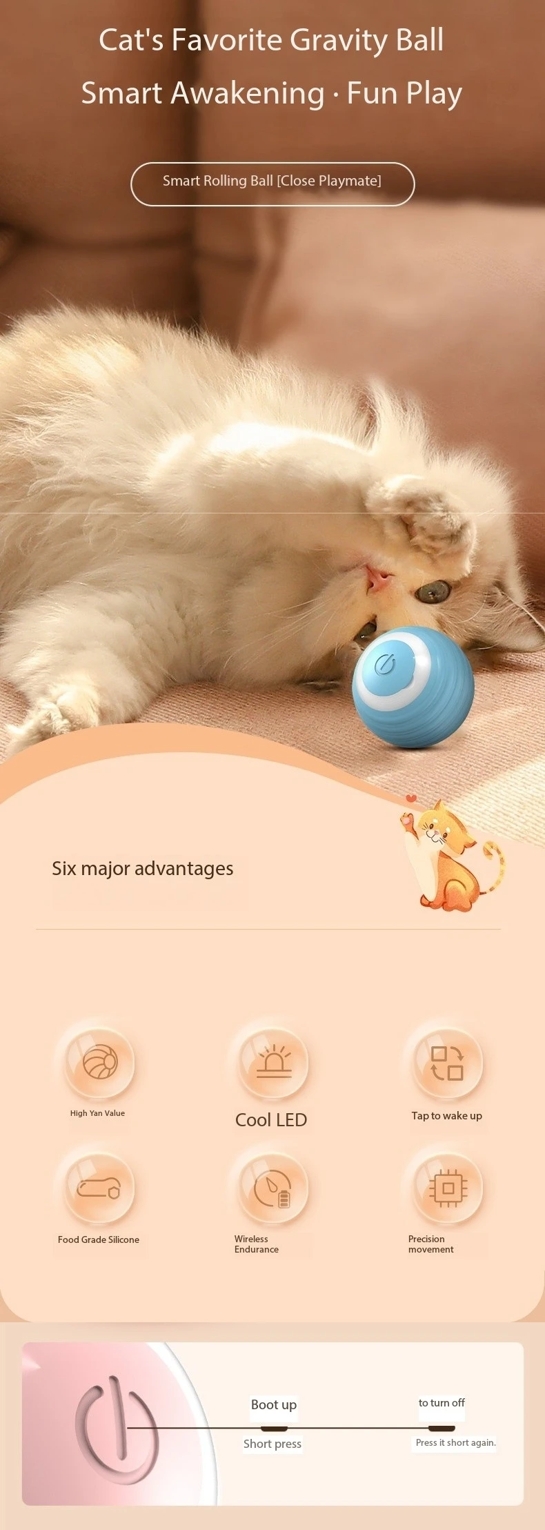 Innovative Automatic Design: Revolutionize playtime for your pet with our Smart New Automatic Electric Rolling Ball Toy. This cutting-edge toy is designed to move and roll on its own, keeping your cat entertained even when you're not around.