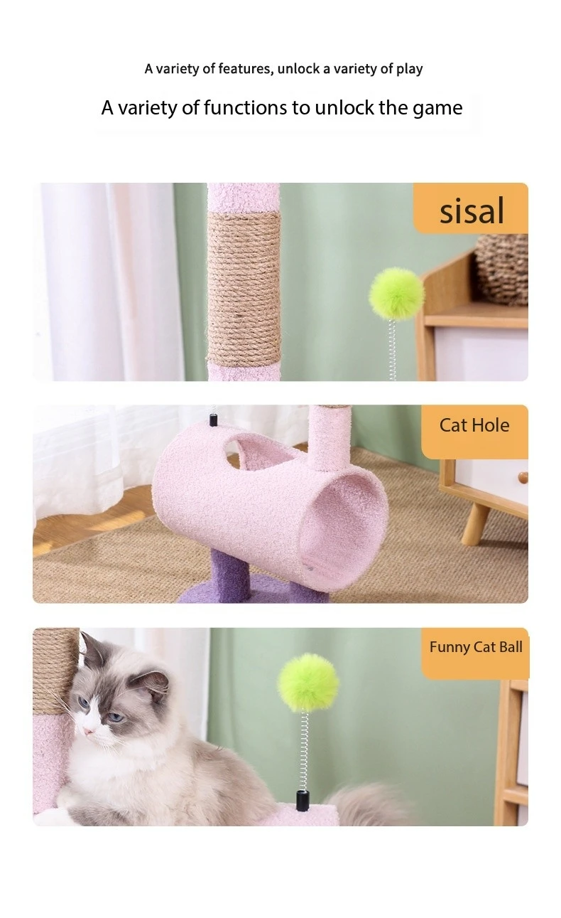 Interactive Features: In addition to serving as a scratching surface, the tower may include interactive elements such as dangling toys, platforms, or cubbies for cats to explore and play with. These features add extra entertainment value to the scratch tower, encouraging cats to engage in active play and exercise. By incorporating play into the scratching experience, the tower helps to channel your cat's energy in a positive and constructive manner, promoting overall well-being and reducing behavioral issues.