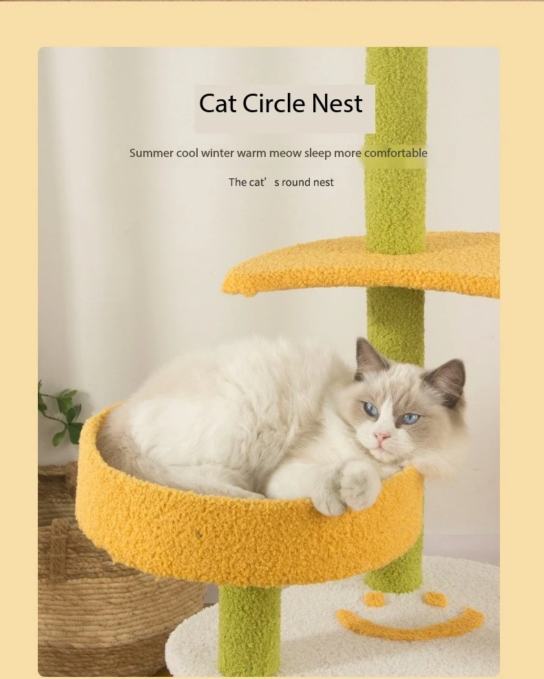 Spacious Lounging Platforms: Give your cat the ultimate relaxation spot with spacious lounging platforms positioned throughout the tower. Whether they prefer to perch high above or nestle in a cozy corner, these platforms provide the perfect vantage point for observing their surroundings or taking a catnap in comfort.