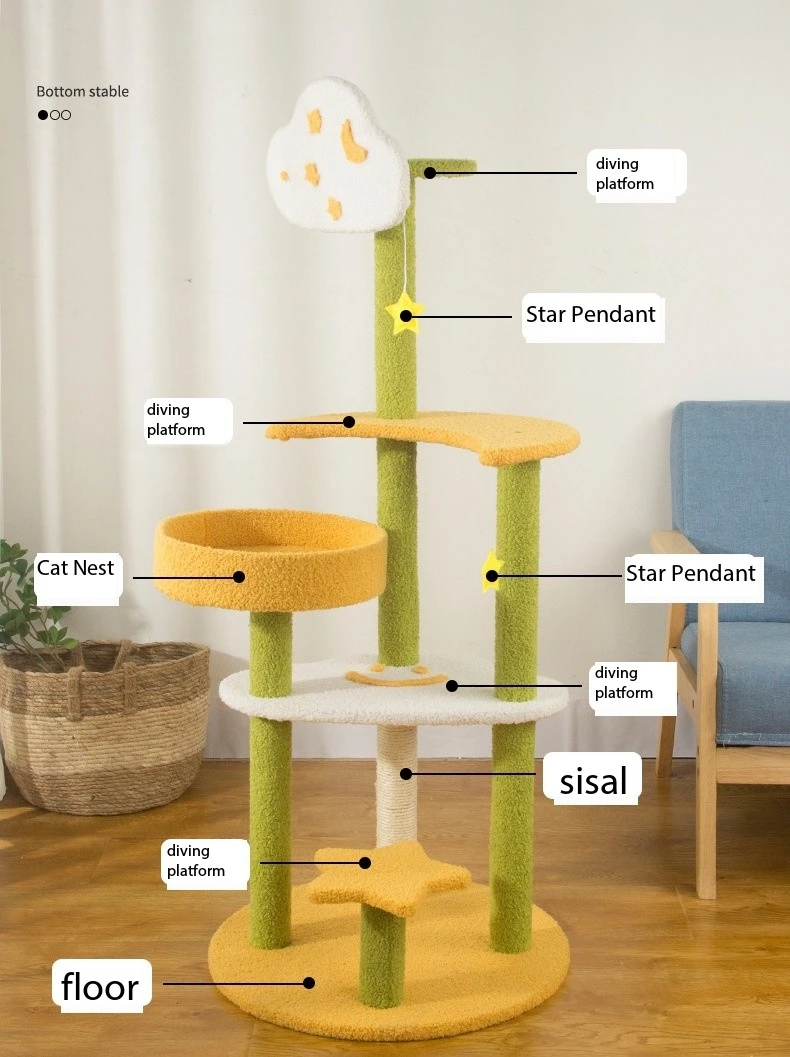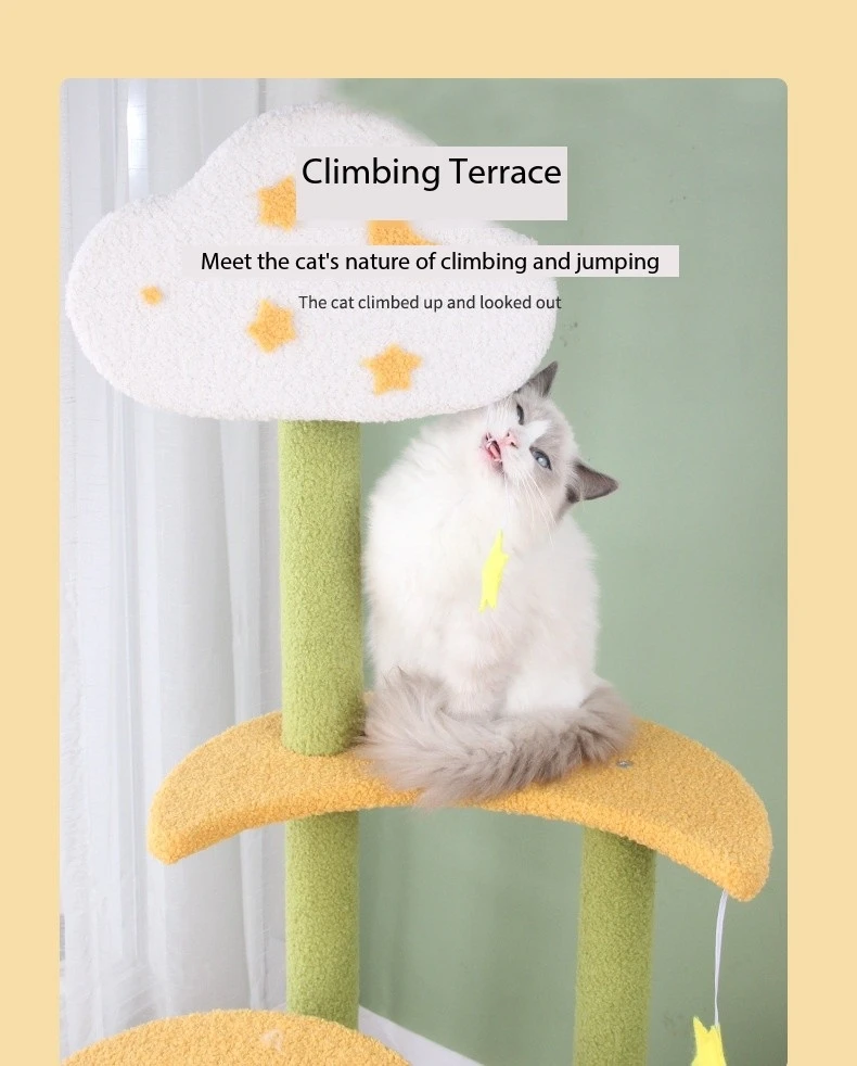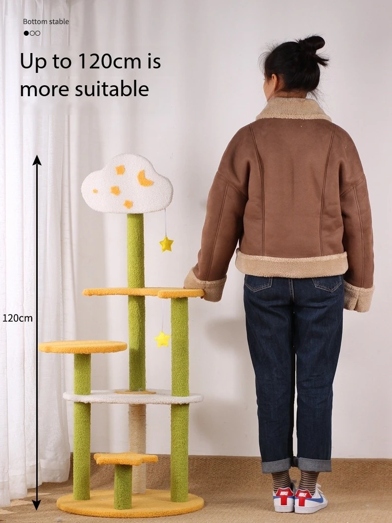 Easy Assembly and Stability: Despite its impressive height, assembling our 47 Inches Star Sisal Cat Scratch Tower Tree is a breeze. With simple instructions and sturdy construction, you can quickly set up this tower in your home without any hassle. Plus, the wide base ensures stability, so your cat can play, scratch, and climb with confidence.
