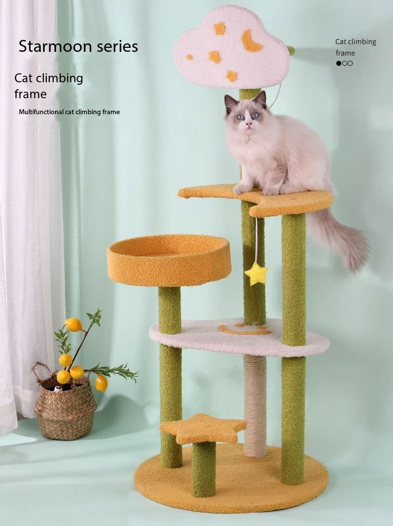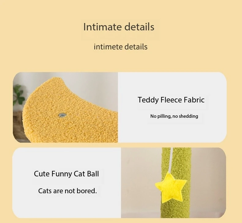 Interactive Star Toys: Encourage your cat's curiosity and engagement with the interactive star toys included on this scratch tower. Suspended from various levels, these dangling toys provide endless entertainment and stimulation, keeping your cat active and engaged for hours on end.
