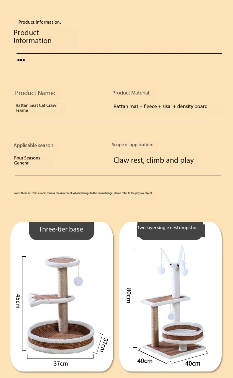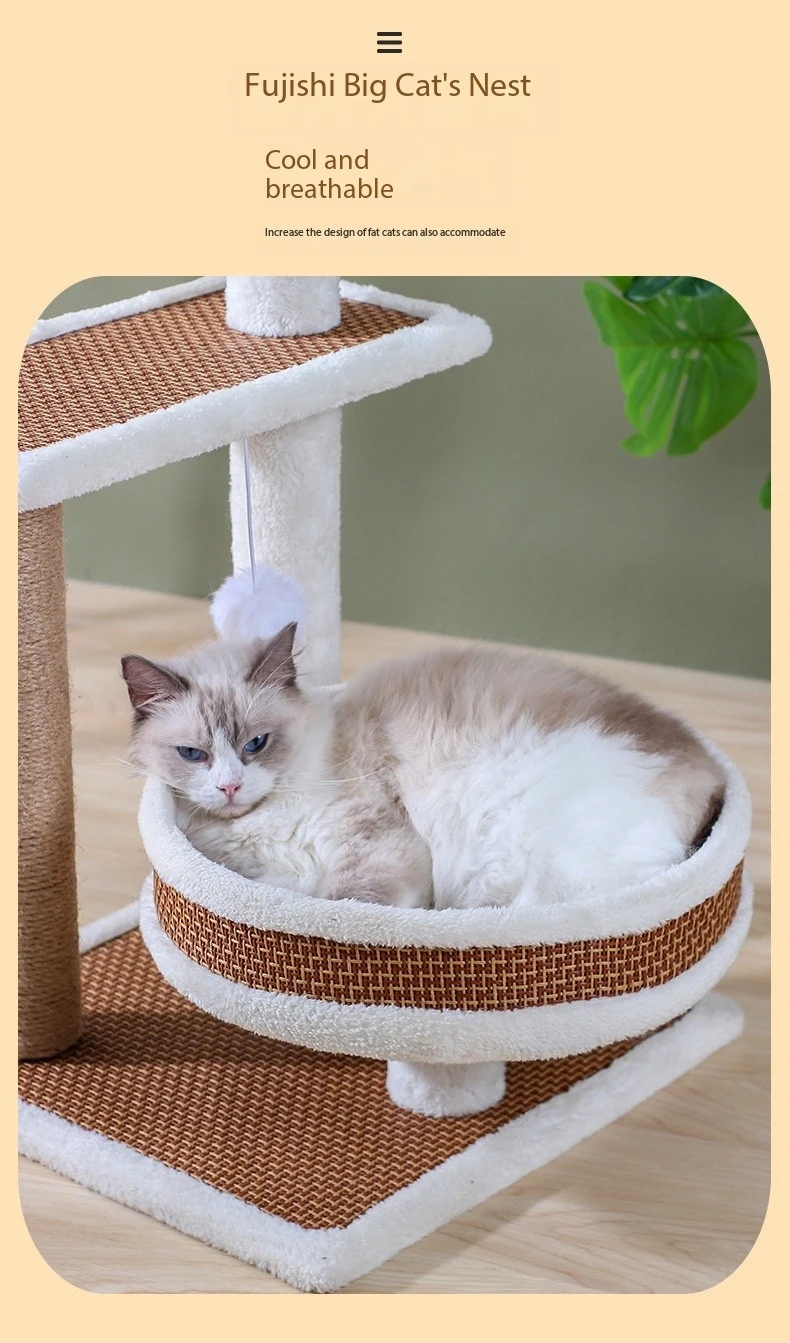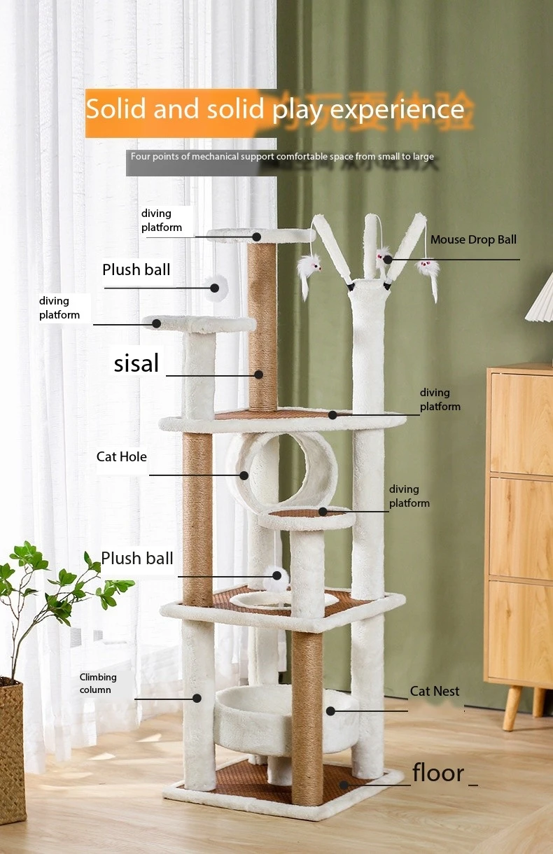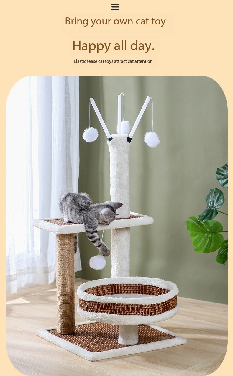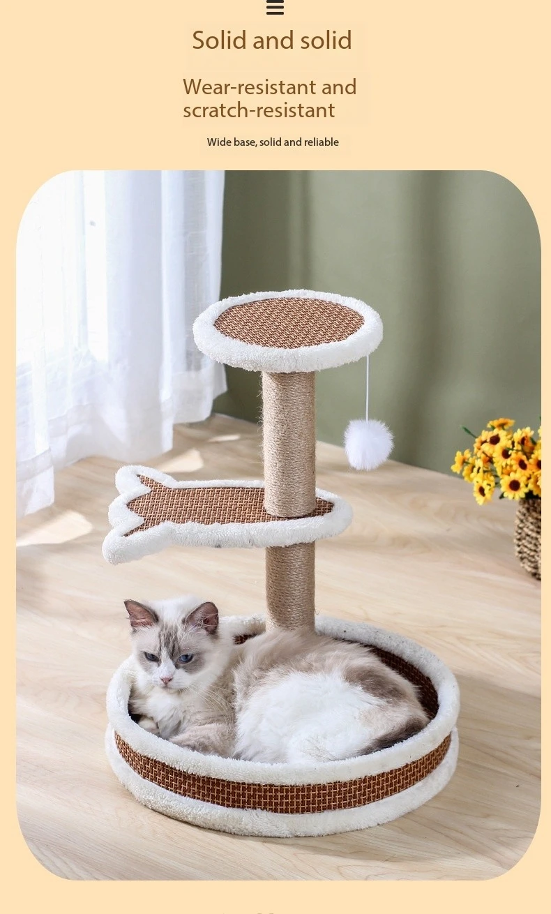 Easy Assembly and Maintenance: Assembly of the cat scratch tower is straightforward, with simple instructions provided for hassle-free setup. The tower is designed for easy maintenance, with removable plush covers and replaceable sisal scratch posts for convenient cleaning and replacement. Regular maintenance ensures that the tower remains hygienic and attractive, prolonging its lifespan and keeping cats entertained for years to come.