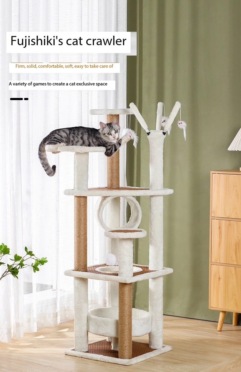 Luxurious Design and Materials: The 51-inch Luxury Multi-Layer Sisal Cat Scratch Tower Tree exudes elegance and sophistication with its luxurious design and premium materials. Crafted from high-quality sisal, plush fabric, and sturdy wood, this tower combines functionality with aesthetics, offering a stylish addition to any home decor while providing cats with an enriching play environment.