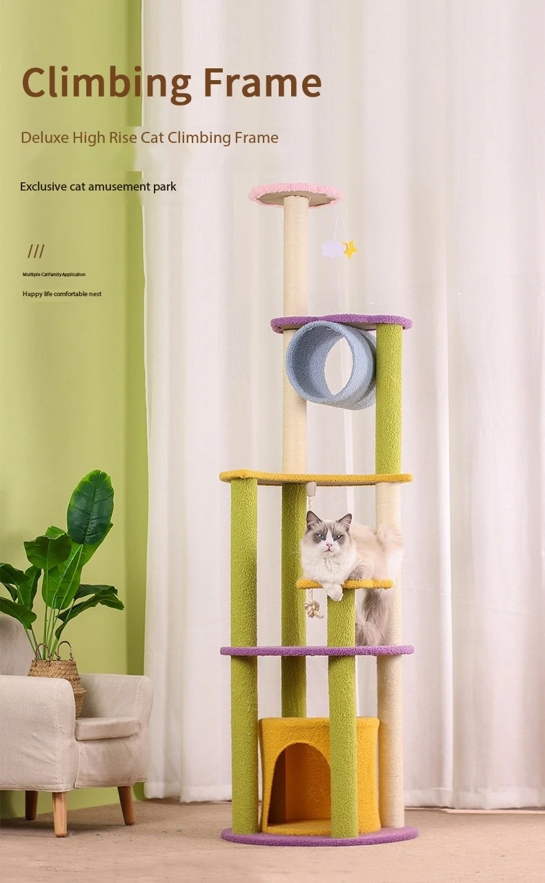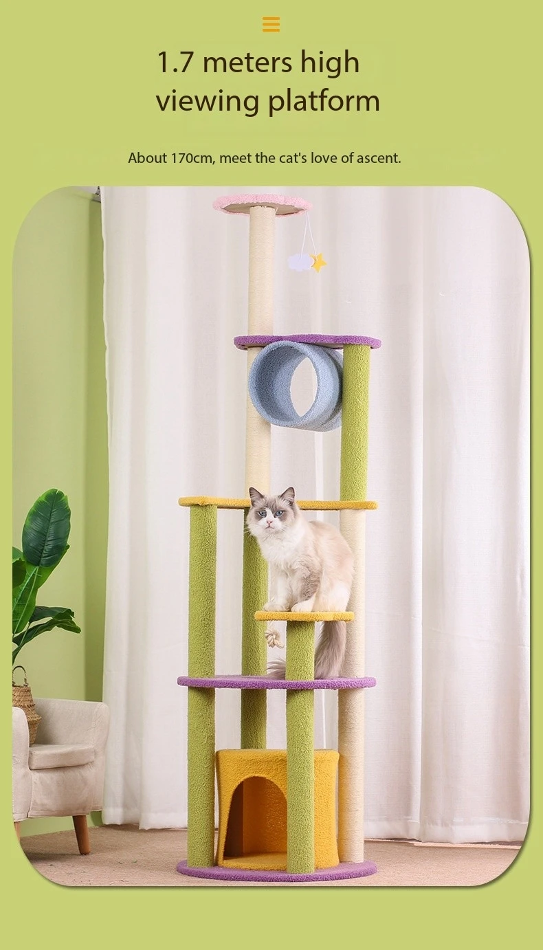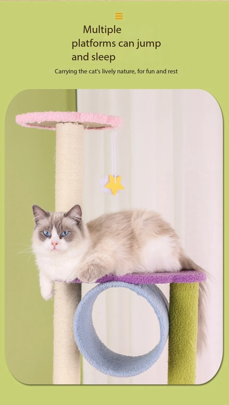 Multi-Level Platforms: The 67-inch Moon Multi-Level Sisal Cat Scratch Tower features multiple levels and platforms for cats to climb and explore. These platforms are strategically placed at various heights, allowing cats to perch at different vantage points and observe their surroundings. The multi-level design promotes physical activity and exercise, helping to keep cats mentally and physically stimulated. Whether cats prefer to lounge in the sun or survey their territory from above, there's a platform to suit every feline preference.
