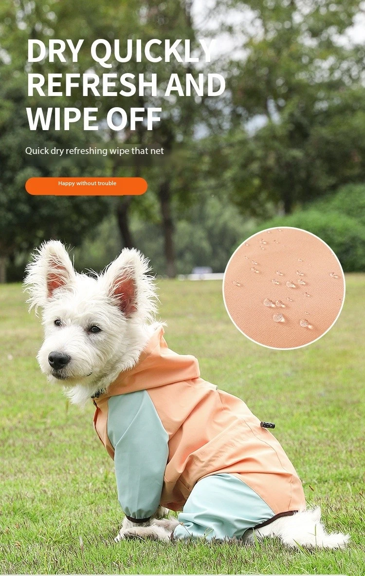 "Prepare your pooch for any weather with our durable Dog Raincoat. Featuring a lightweight and breathable design, this raincoat offers optimal protection against rain, wind, and mud, making walks enjoyable no matter the forecast."