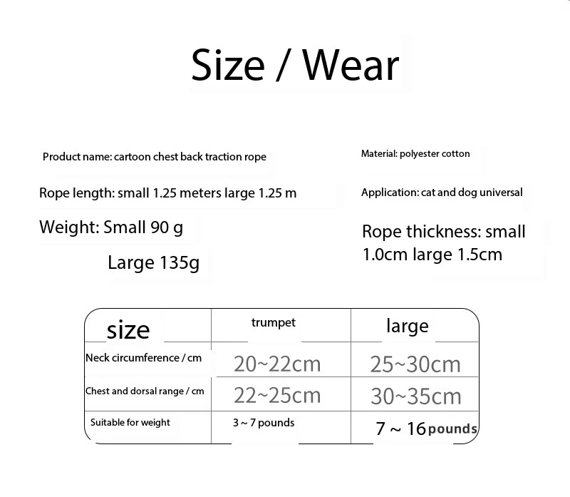 | Usage | Dog Cat Harness |