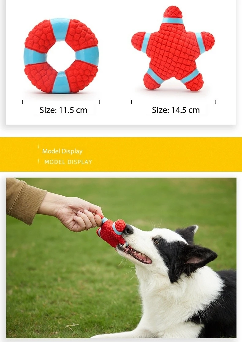 Versatile Play Options: Whether your dog prefers to fetch, chew, or simply snuggle up with their toys, our Pet Toy Dog Bite Resistant Latex Sound Soft Dog Playing Toy offers versatile play options to suit their preferences. Its lightweight design makes it easy for your dog to carry around, while its donut shape adds an extra element of fun and intrigue to playtime.