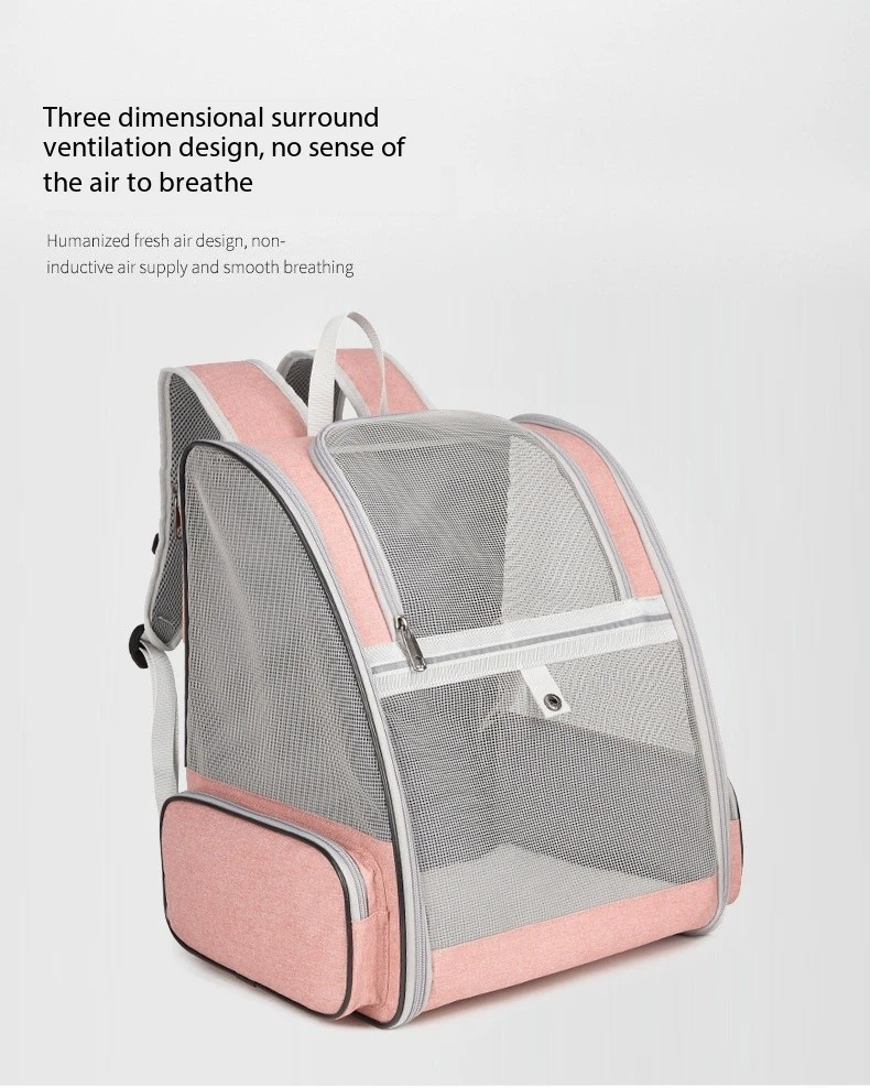 Breathable Mesh Panels: Designed to prioritize your pet's comfort, the carrier features strategically placed breathable mesh panels on all sides. These panels facilitate optimal airflow and ventilation, ensuring your pet remains cool and comfortable during travel. Additionally, the mesh panels provide visibility, allowing your pet to observe their surroundings and feel reassured while inside the carrier.