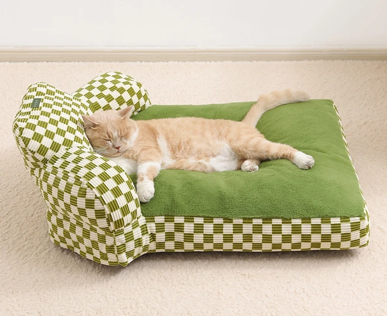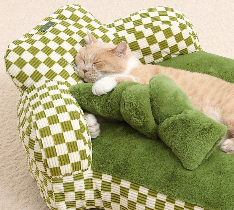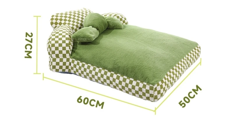 Stylish Design: Enhance your home décor with this chic sofa-style pet bed featuring a trendy green checkerboard pattern. Not only does it provide a cozy resting spot for your pet, but it also adds a touch of sophistication to any room.