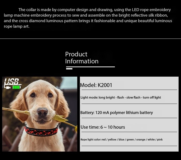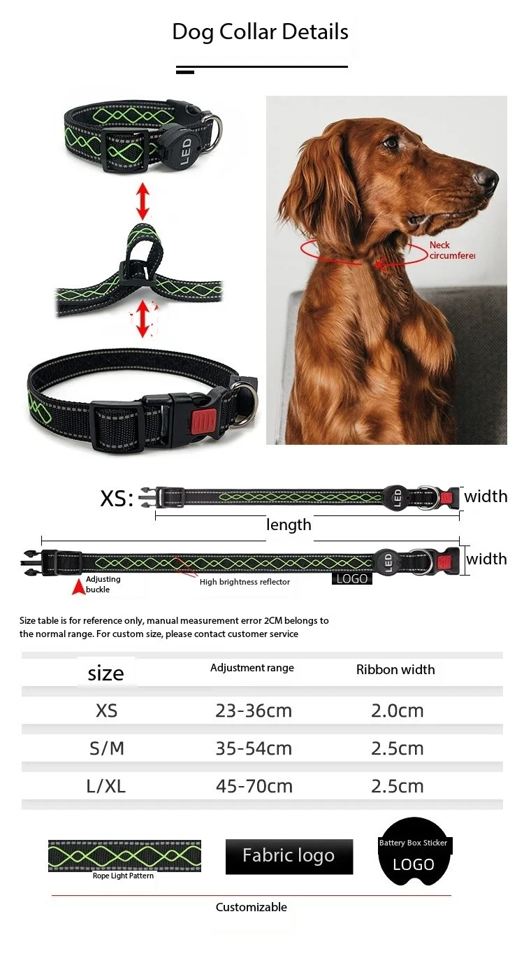 Customizable and Stylish: Featuring multiple color options and adjustable settings, our rechargeable LED dog collar allows you to customize the lighting to suit your pet's personality and style while providing unmatched visibility for added safety and flair.