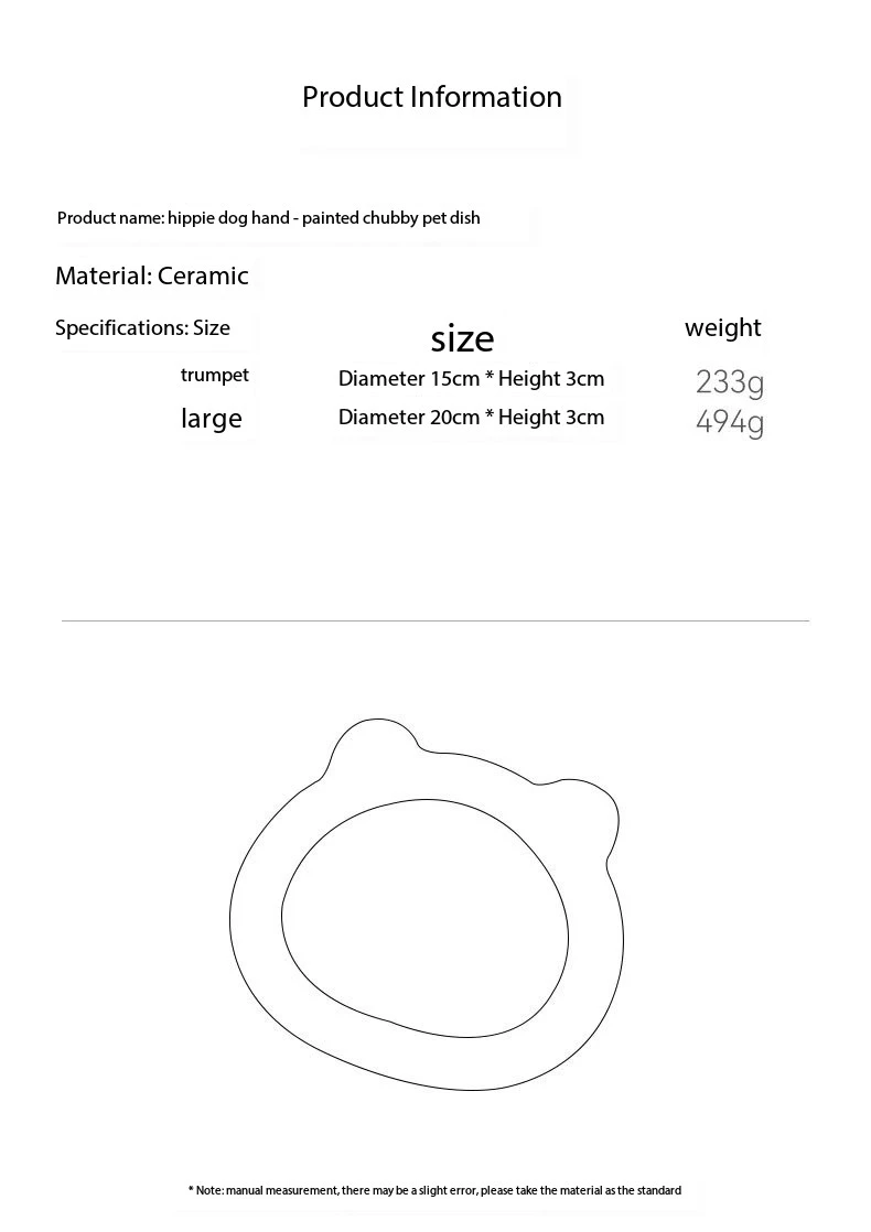 Introducing Elegance to Pet Dining: Introduce your pet to the finer side of dining with our Light Color Hand-Painted Pet Anti-Knock Ceramic Plate. Hand-painted with intricate designs, this plate is not just a feeding dish but a work of art that will enhance your pet's dining experience. The anti-knock design ensures durability and safety, making it a perfect addition to your pet's daily routine.