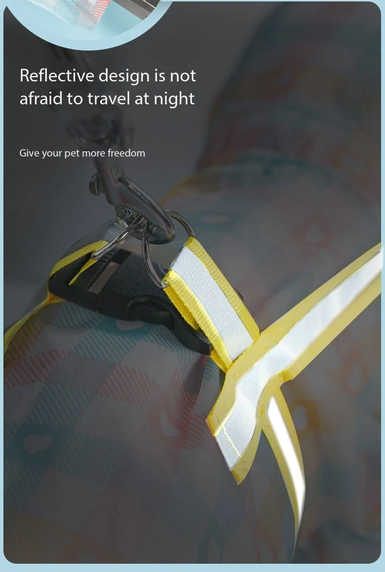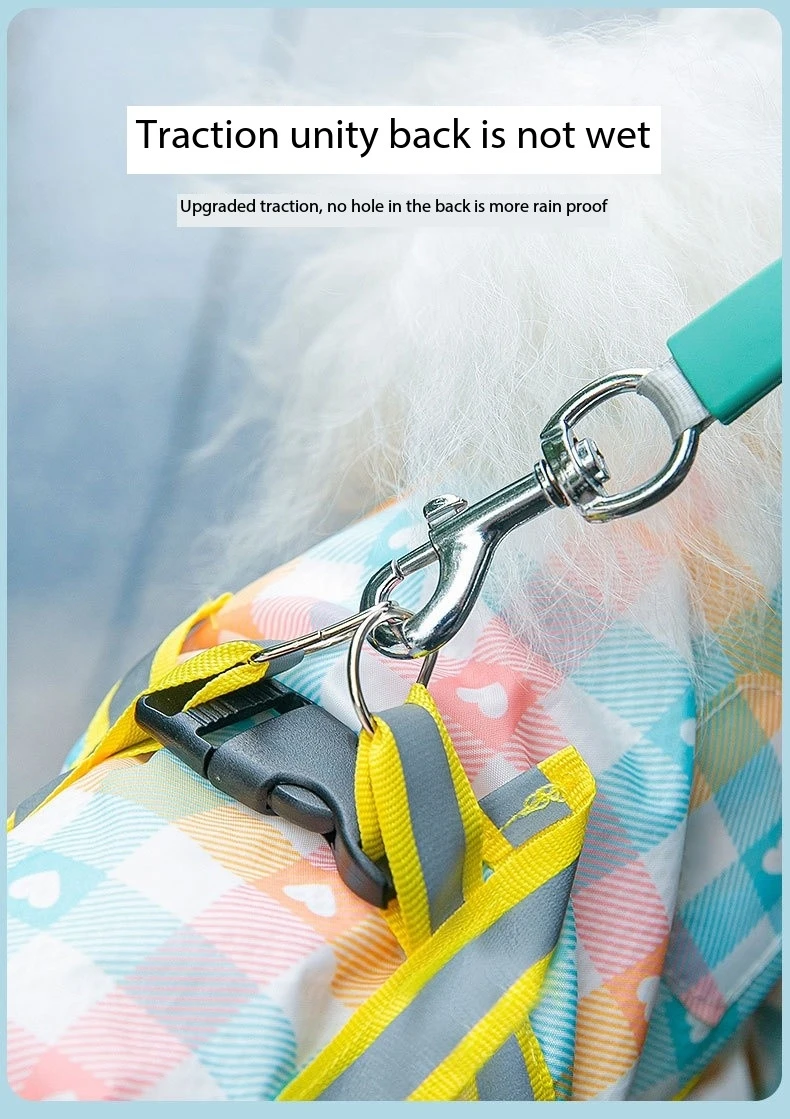 "Rain or shine, our Dog Raincoat is a must-have accessory for every pet owner. With its waterproof construction and easy-to-clean design, you can say goodbye to soggy fur and muddy paws. Plus, the convenient leash access slot allows for hassle-free walks, making it a practical choice for both you and your furry companion."