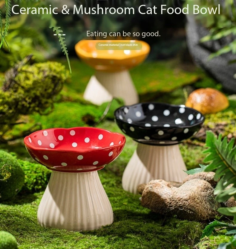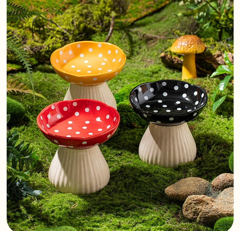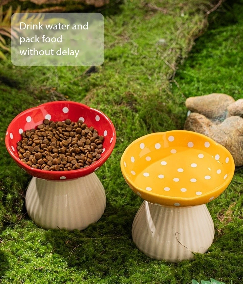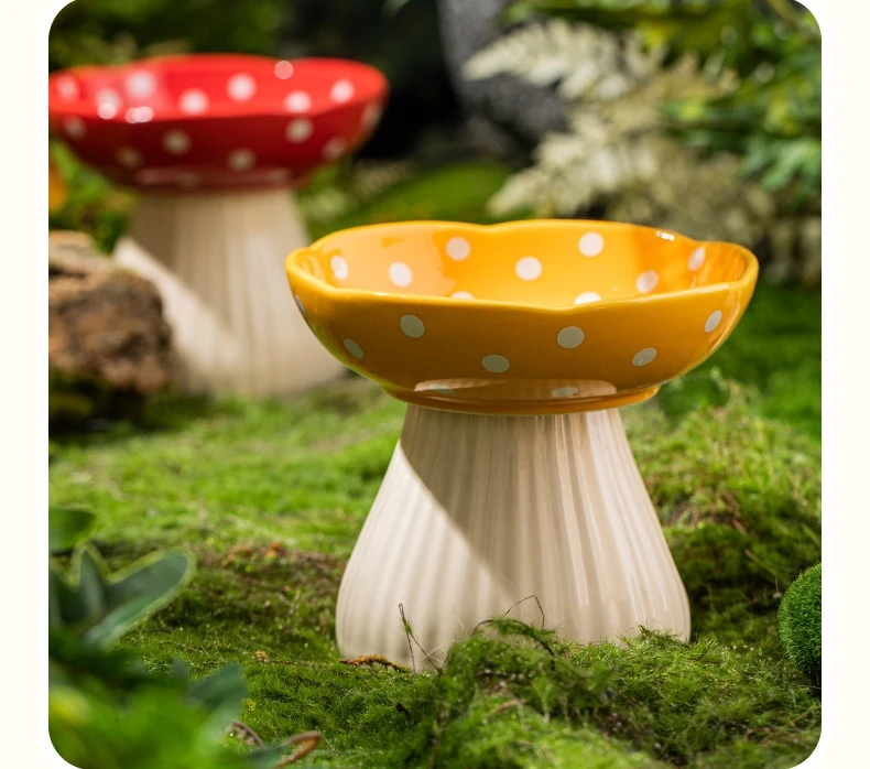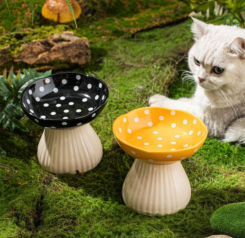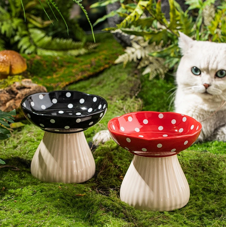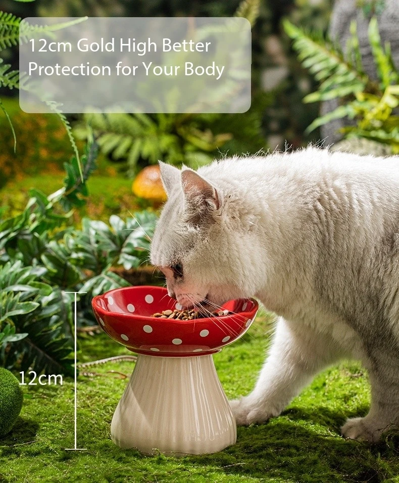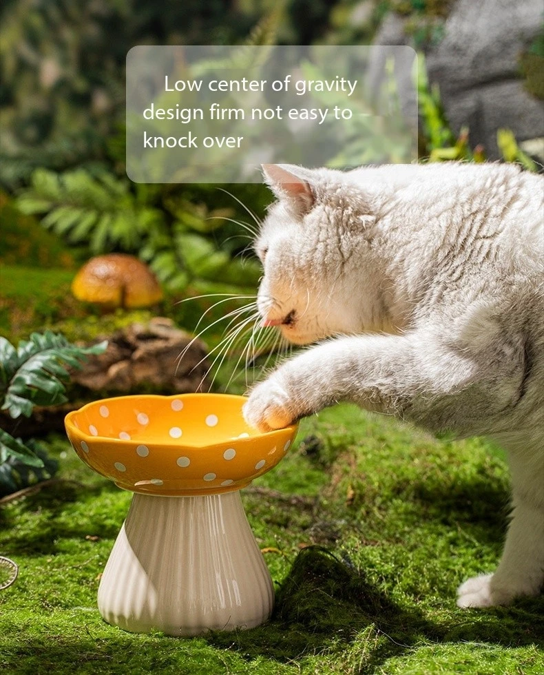 Premium Mushroom Shaped Elevated Neck Guard Ceramic Cat Bowl