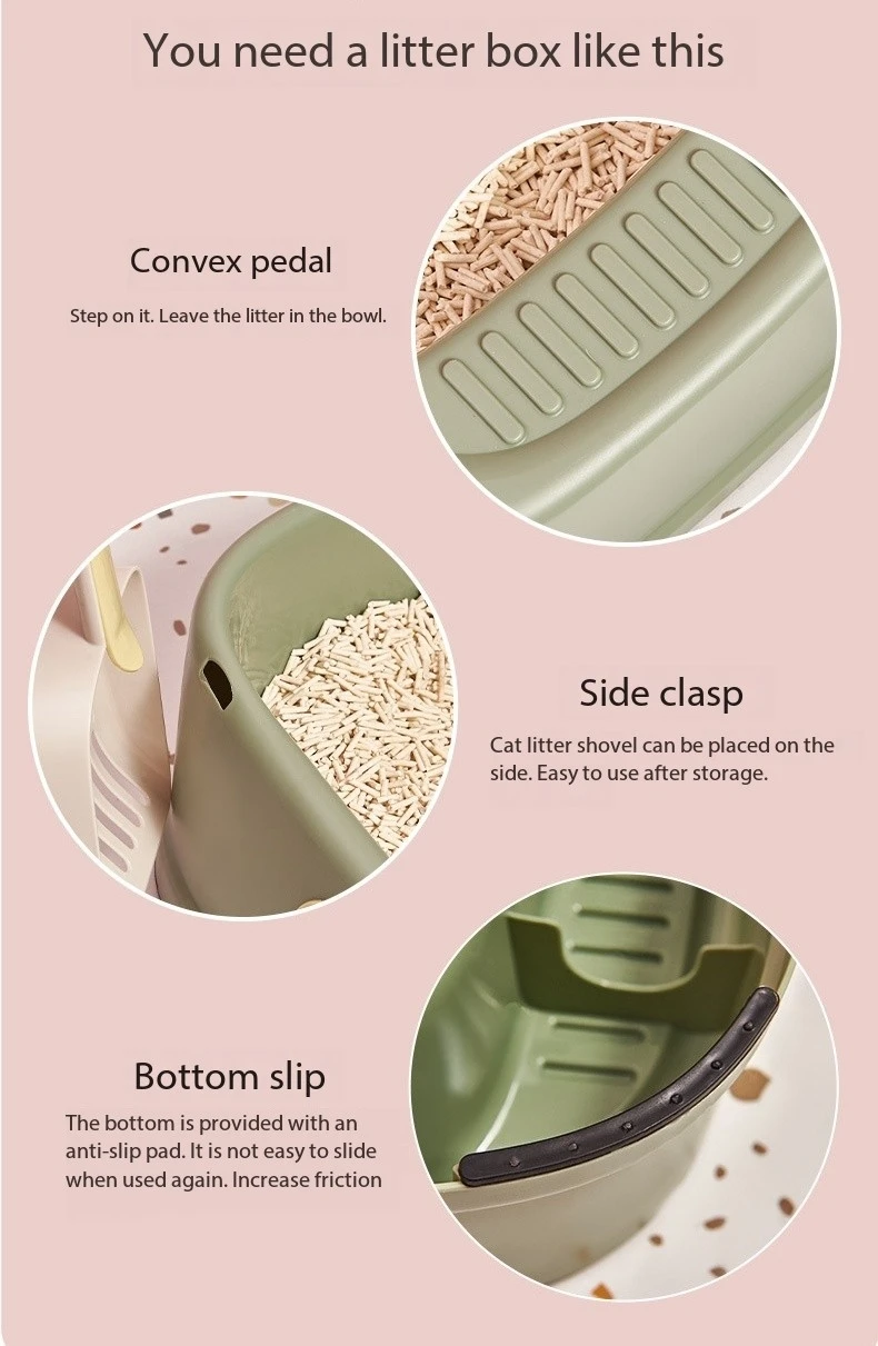 Innovative Three-Color Design for Customization:The litter box showcases an innovative two-color design, offering customization options to match your personal style and home decor.Choose from a selection of vibrant colors such as aqua blue, sunshine green, and sleek beige, allowing you to create a visually appealing environment for your cat.