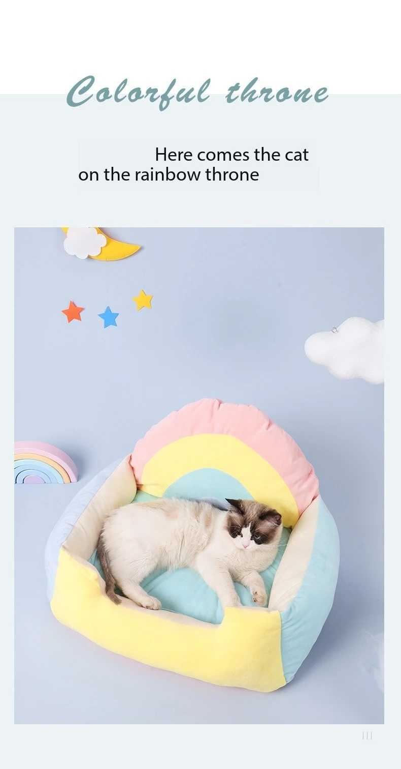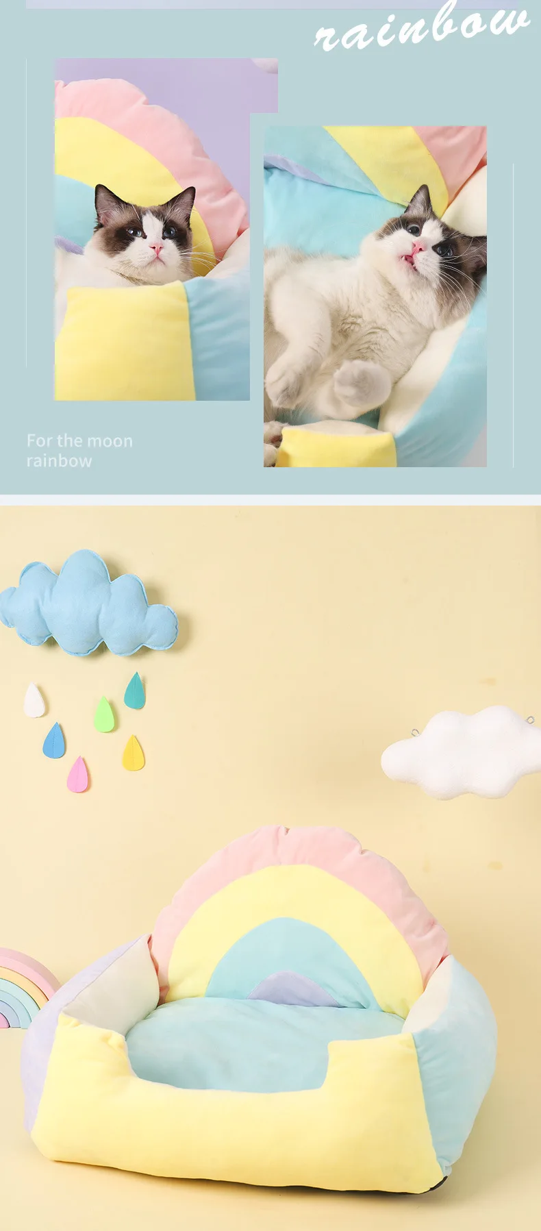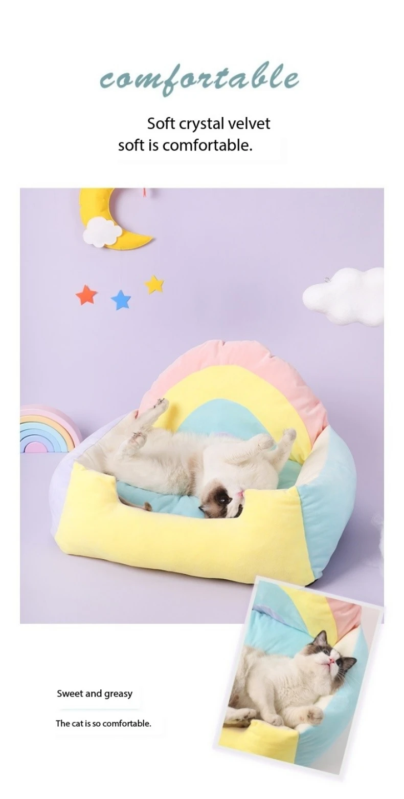 Rainbow Soft Dog Cough Bed Fluffy Cat With Removable Covers