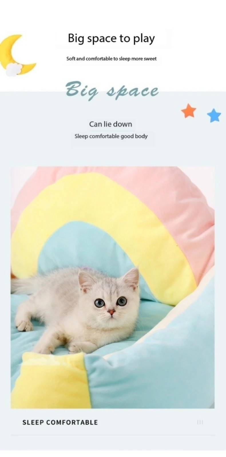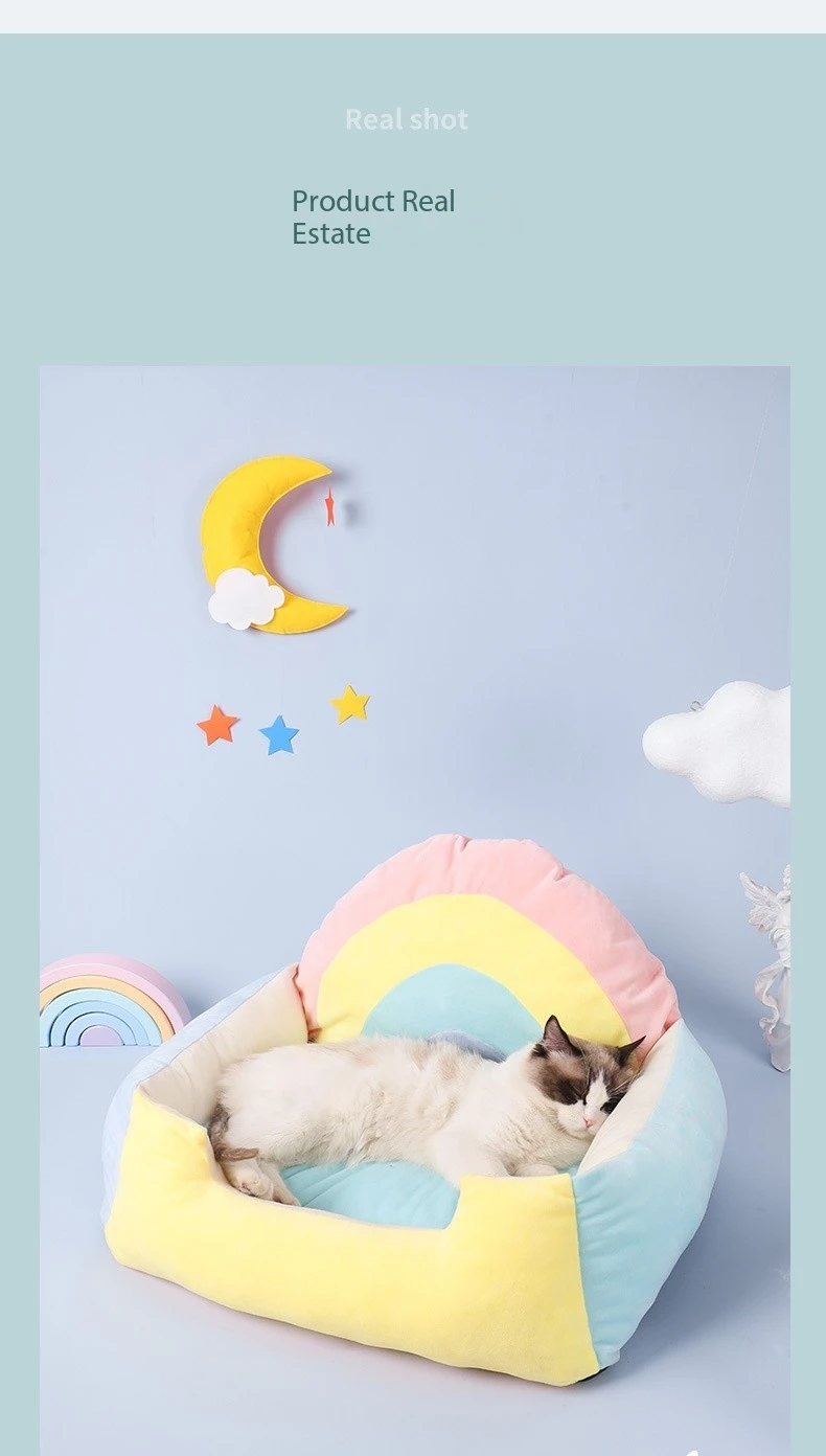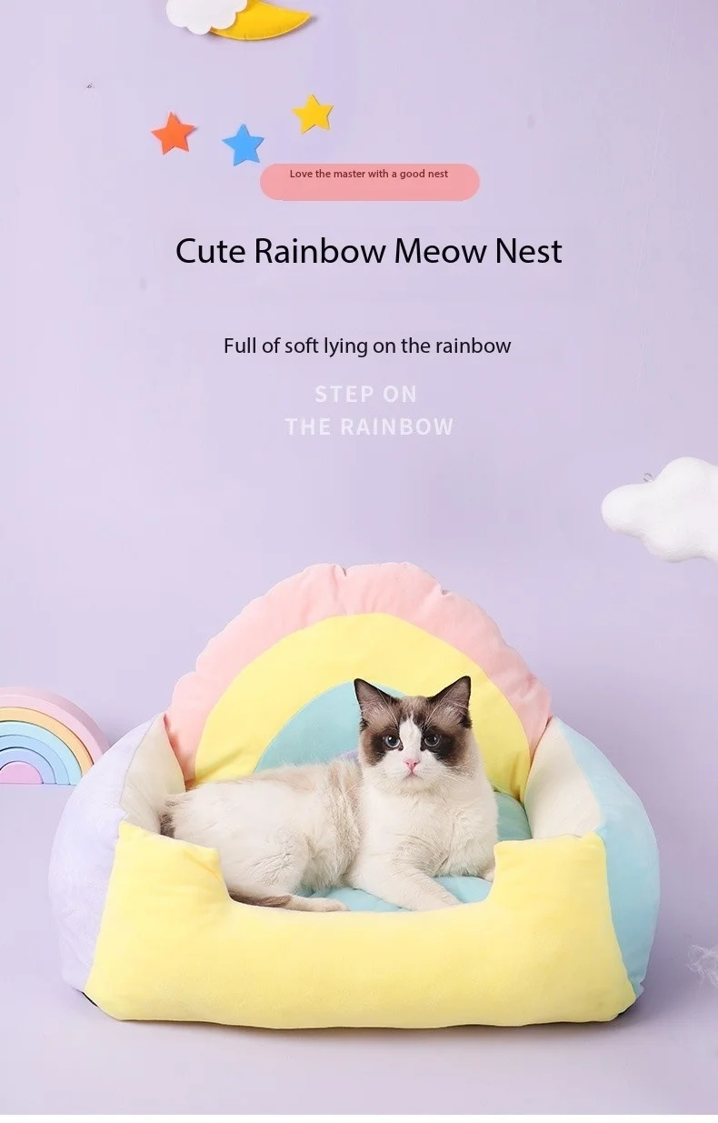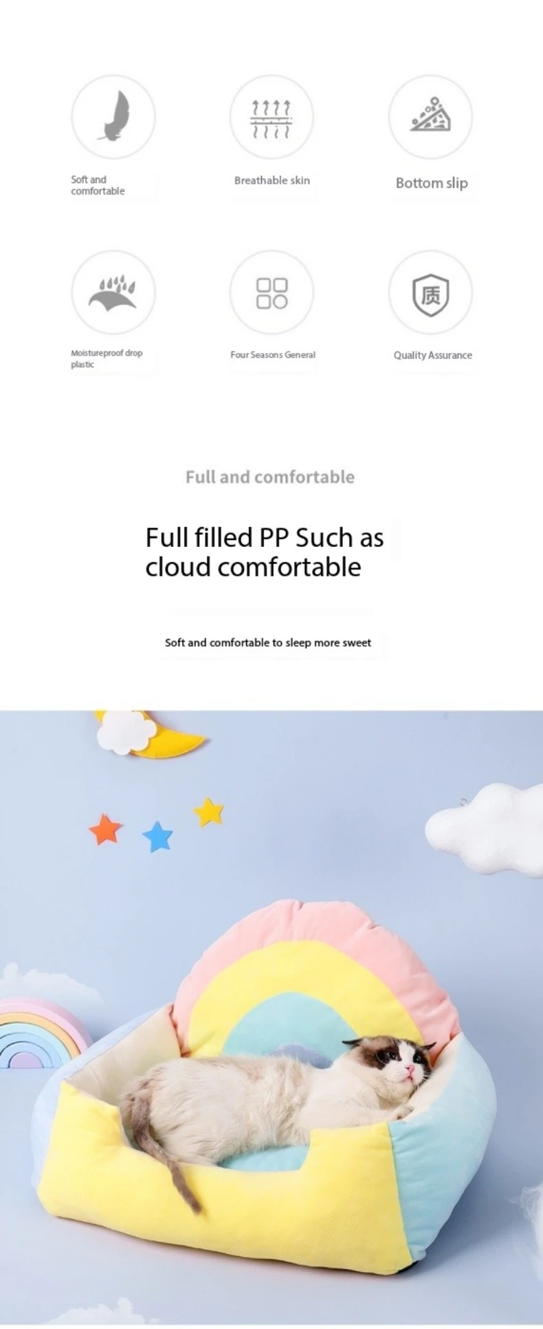 Rainbow Soft Dog Cough Bed Fluffy Cat With Removable Covers